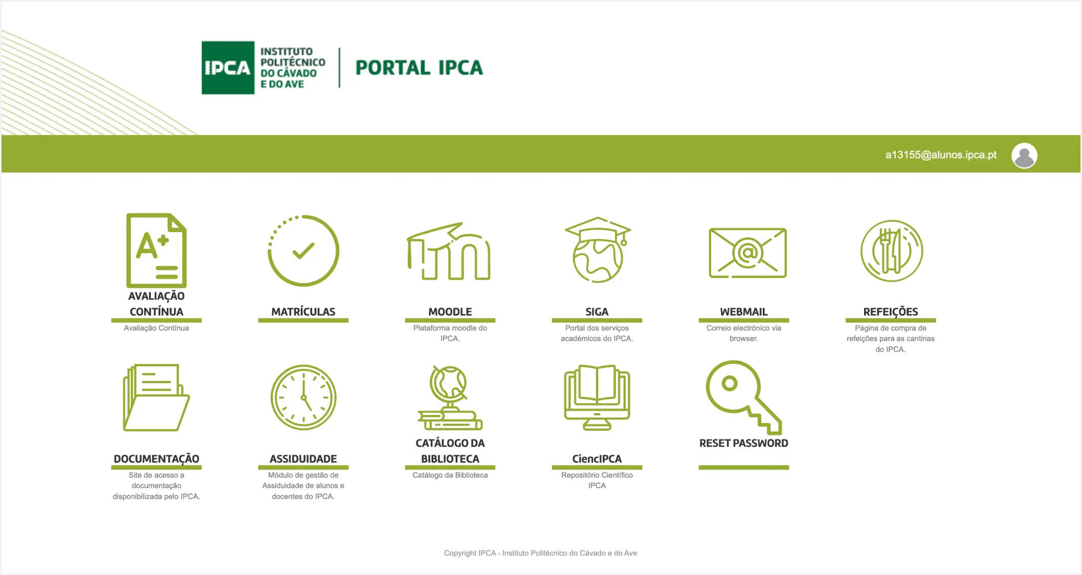 Apart from consolidating services provided by independent platforms, our concern was to enhance adherence to Portal IPCA. This prompted us to minimize the services visual prominence, considering their availability through alternative means. Furthermore, we integrated essential functionalities of those services for students, and planned to gradually remove the external services as the integration progressed.