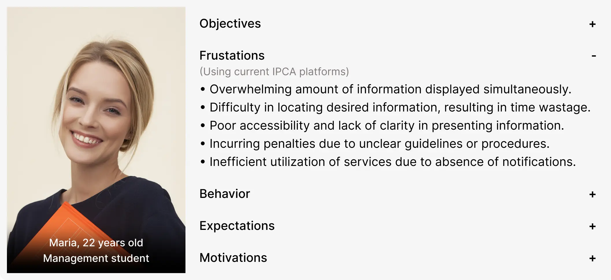 After 207 answers and 10 interviews, we used the affinity diagram and empathy map to process the data. Together, we identified the needs of our main target audience, the students, through personas.